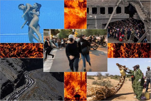 Siyahıda İranda sentyabrdan bəri davam edən etiraz aksiyaları, Şri-Lankada baş verən üsyanlar, Avropada rekord istilər və Ukraynadakı müharibənin görüntülərini, xüsusən də İrpendən mülki əhalinin təxliyəsini əks etdirən fotolar var.