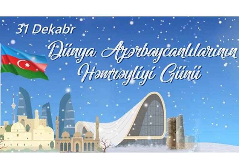 Bu gün dünya azərbaycanlılarının birlik və həmrəyliyini ifadə edən 31 dekabr – Dünya Azərbaycanlılarının Həmrəyliyi Günü qeyd olunur.