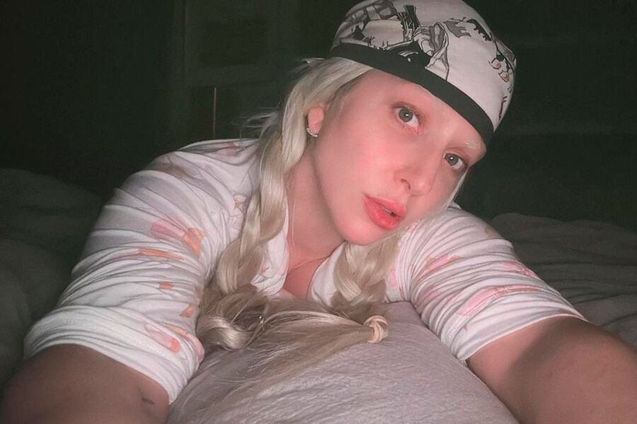 37 yaşlı Ledi Qaqa çəhrayı rəngli uzun qollu ağ paltarda kamera qarşısına keçib. Müğənni makiyajsız və qaşları ağardılmış pozalar verib. Aktrisa saçlarını hörərək başına yaylıq taxıb. Yataq otağında çarpayıda uzanmışdı.