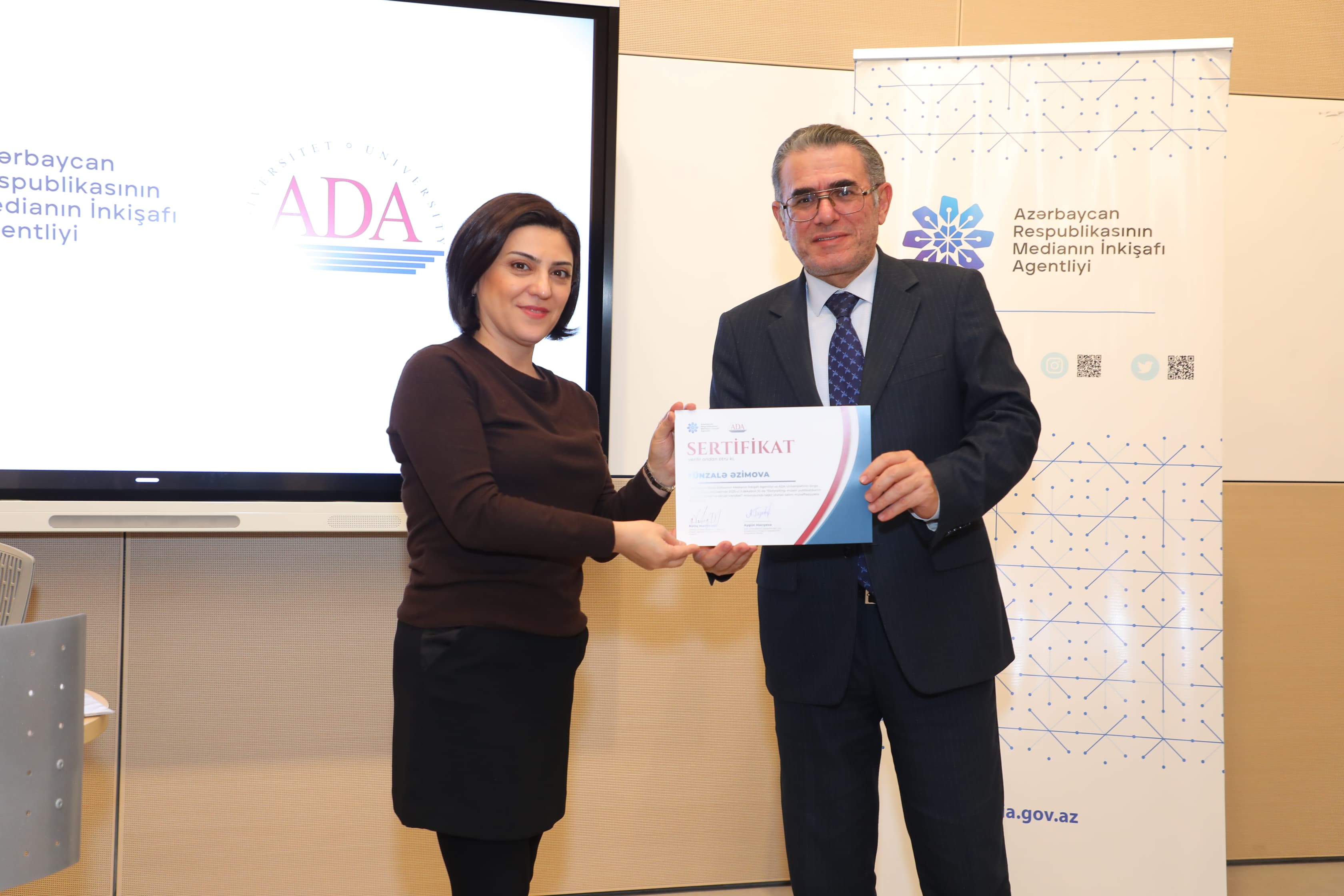 Azərbaycan Respublikasının Medianın İnkişafı Agentliyi və ADA Universitetinin birgə təşkilatçılığı ilə keçirilən “Storytelling: müasir publicistikanın yeni ifadə formaları və aktual meyillər” mövzusunda təlim başa çatıb. Təlim çərçivəsində iştirakçılara müsabiqə mərhələsi üzrə sertifikatlar təqdim olunub.