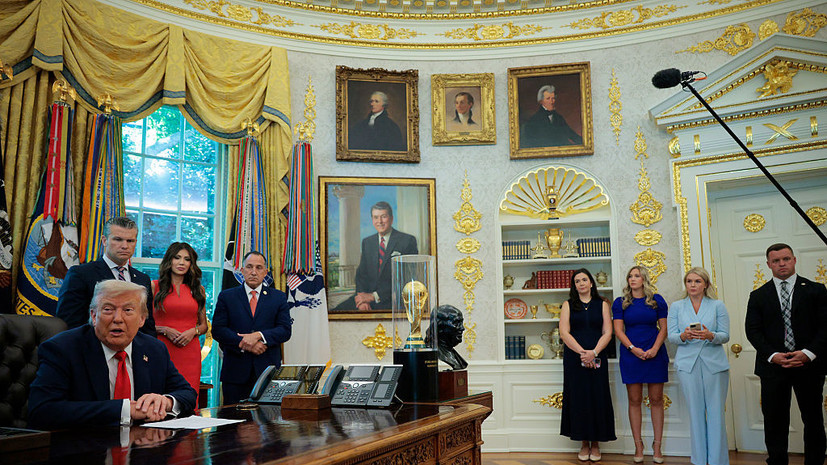 “The New York Times” qəzetinin məlumatına görə, sənətkarlar müntəzəm olaraq ABŞ lideri Donald Tramp üçün Oval Ofisdə qızıl zinət əşyaları hazırlayırlar. Nəşr qeyd edir ki, güzgülərdə və portret çərçivələrindəki qızıl bolluğu bəzi şayiələrə səbəb olub; bəziləri bunun sadəcə ucuz boyanmış plastik olduğunu iddia edir. Tramp isə bu məlumatları təkzib edib.
