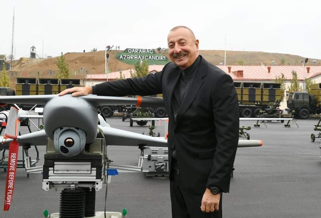 Üçüncüsü, İlham Əliyev Araz çayı sahilindən arxa fonda “Qarabağ Azərbaycandır” yazısı olan ərazidən İsrail istehsalı olan “Harop”la foto çəkdirdi, bununla İranın hədələyici təlimlərinə cavab olaraq Azərbaycanın ordusunda müasir silahların olduğuna diqqət çəkdi.