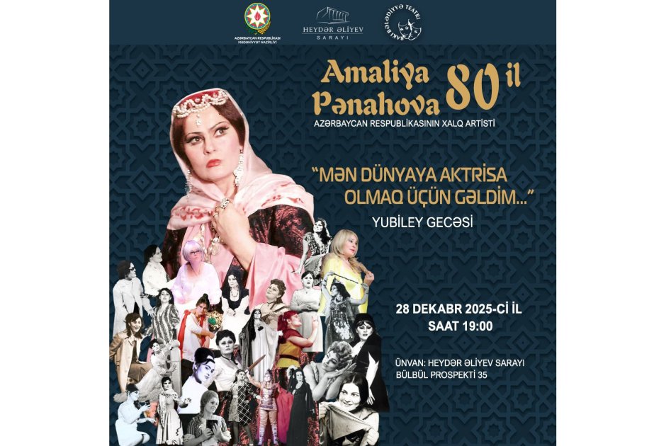 Dekabrın 28-də Heydər Əliyev Sarayında milli teatr və kino tariximizin əfsanəsi, Xalq artisti, Dövlət mükafatı laureatı, “Şərəf” və “Şöhrət” ordenli, Bakı Bələdiyyə Teatrının yaradıcısı Amaliya Pənahovanın 80 illiyinə həsr olunmuş “Mən dünyaya aktrisa olmaq üçün gəldim…” adlı yubiley gecəsi keçiriləcək.