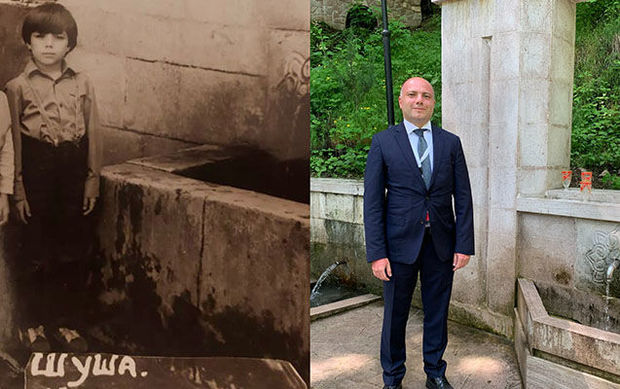 Nazir bildirib ki, şəkillərin arasında 36 il fərq var. “İlk dəfə Şuşanı gəzəndə uşaq idim və gözəlliyi məni sonsuz heyrətləndirmişdi. Yenidən burada olmaq və 36 illik ayrılıqdan sonra müqəddəs İsa Bulağından su içmək necə də xoşdur!