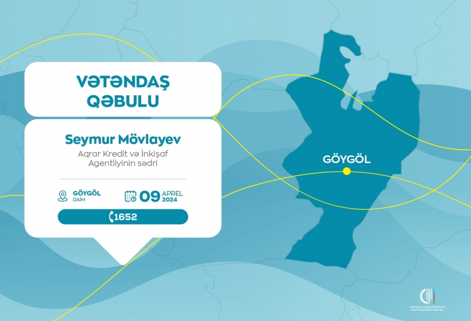 Aqrar Kredit və İnkişaf Agentliyinin sədri Seymur Mövlayev aprelin 9-da, saat 10:00-da Göygöl Dövlət Aqrar İnkişaf Mərkəzinin inzibati binasında vətəndaşların müraciətlərini dinləyəcək.