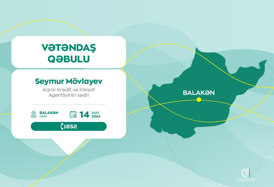Aqrar Kredit və İnkişaf Agentliyinin sədri Seymur Mövlayev mayın 14-də, saat 10:00-da Balakən Dövlət Aqrar İnkişaf Mərkəzinin inzibati binasında vətəndaşları qəbul edəcək.
