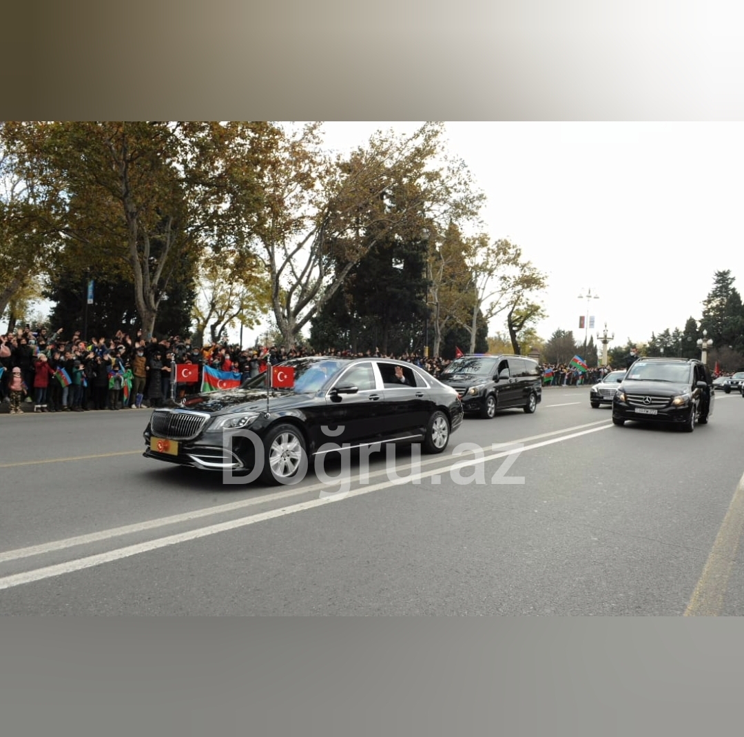 Qələbə Paradı zamanı maraqlı anlardan biri də o, idi ki, Azərbaycan Respublikasının Prezidenti İlham Əliyevin Türkiyə Respublikasının Prezidenti Rəcəb Tayyib Ərdoğanın maşın karvanları tədbir iştirakçılarının yanından hərəkət edərək Azadlıq meydanına doğru yön aldı. Bu da onu deməyə əsas verir ki, Azərbaycan xalqı həm Azərbaycan Respublikasının Prezidenti İlham Əliyevin həmdə qardaş ölkənin prezidenti Rəcəb Tayyib Ərdoğana məhəbbət və inamları bitib-tükənməz və sonsuzdur.
