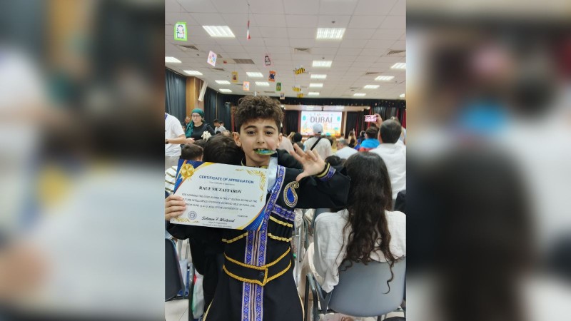 Xətai rayonu, S.Həsənov adına 63 nömrəli tam orta məktəbin şagirdi Rauf Müzəffərov olimpiadada “IQ” kateqoriyası üzrə qızıl medala layiq görülüb. Gənc istedad yarışda yüksək intellektual göstərici nümayiş etdirməklə yanaşı, tədbir zamanı Azərbaycanın milli geyimində çıxış edərək ölkəmizin mədəni dəyərlərini də təqdim edib.