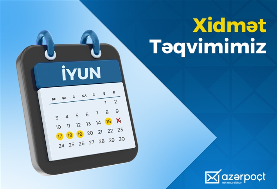 Qeyd edək ki, 16 iyun tarixində poçt şöbələrində qeyri-iş günü olacaq.