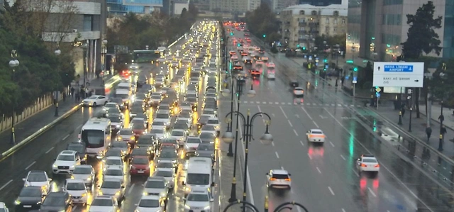 Paytaxtın müxtəlif küçə və prospektlərində nəqliyyatın sıxlığı müşahidə olunur.