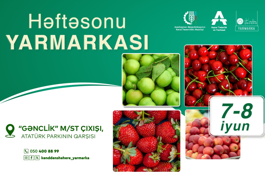 İyunun 7-8-də Kənd Təsərrüfatı Nazirliyinin tabeliyindəki “Aqrar Tədarük və Təchizat” ASC-nin təşkilatçılığı ilə paytaxtda “Kənddən Şəhərə” həftəsonu yarmarkası keçiriləcək.