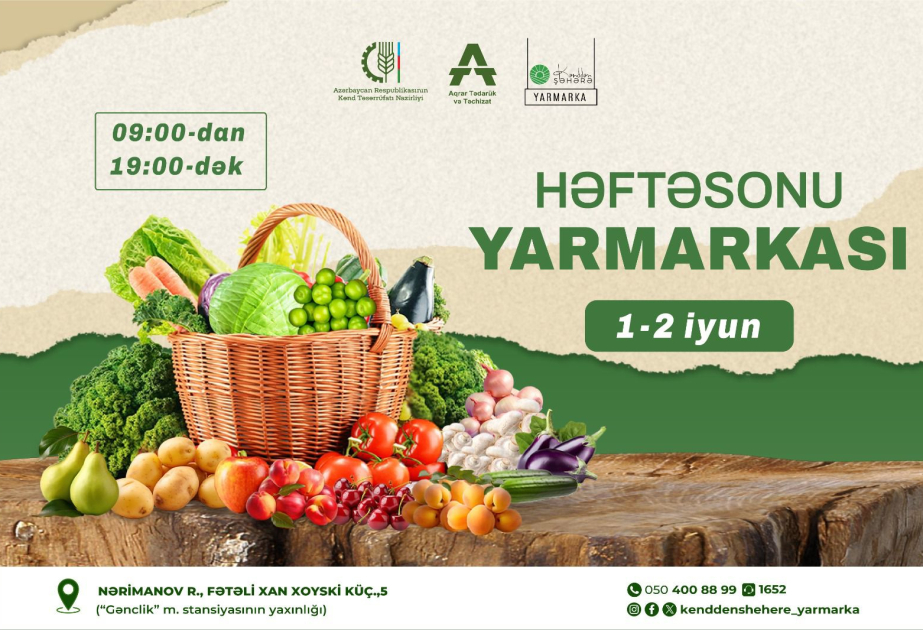 İyunun 1-2-də Kənd Təsərrüfatı Nazirliyi tərəfindən paytaxtda “Kənddən Şəhərə” həftəsonu yarmarkası təşkil olunacaq.
