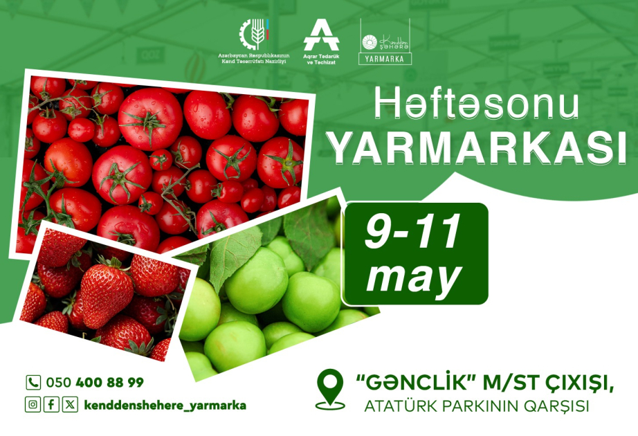“Kənddən Şəhərə” yarmarkalarında iştirak etmək istəyən fermerlər +994 50 400 88 99 nömrəli Çağrı Mərkəzi ilə əlaqə saxlaya və ya yarmarkanın sosial şəbəkə hesabları üzərindən müraciət edə bilərlər.