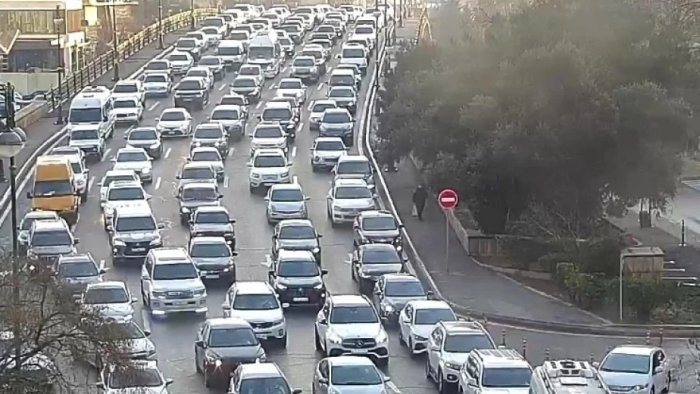 Bakının bəzi yollarında nəqliyyatın sıxlığı müşahidə olunur.