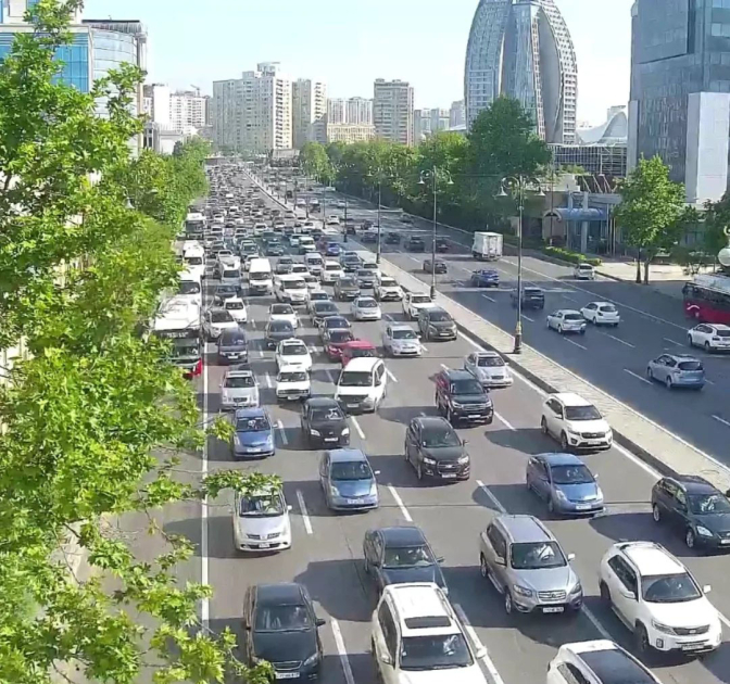 Bakının bir sıra yollarında nəqliyyatın hərəkətində sıxlıq yaranıb.
