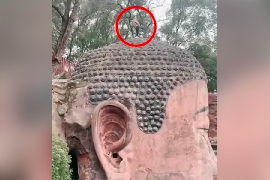 Yanvarın 31-də turist Sıçuan əyalətindəki məşhur attraksiona gələn çoxsaylı ziyarətçilərin qarşısında sidiyə çıxıb. O, hasarın üstündən keçərək hündürlüyü 71 metr olan müqəddəs heykəlin zirvəsinə qalxıb. Daha sonra şahidlər onun heykəlin başında nəcis etdiyini görüblər.