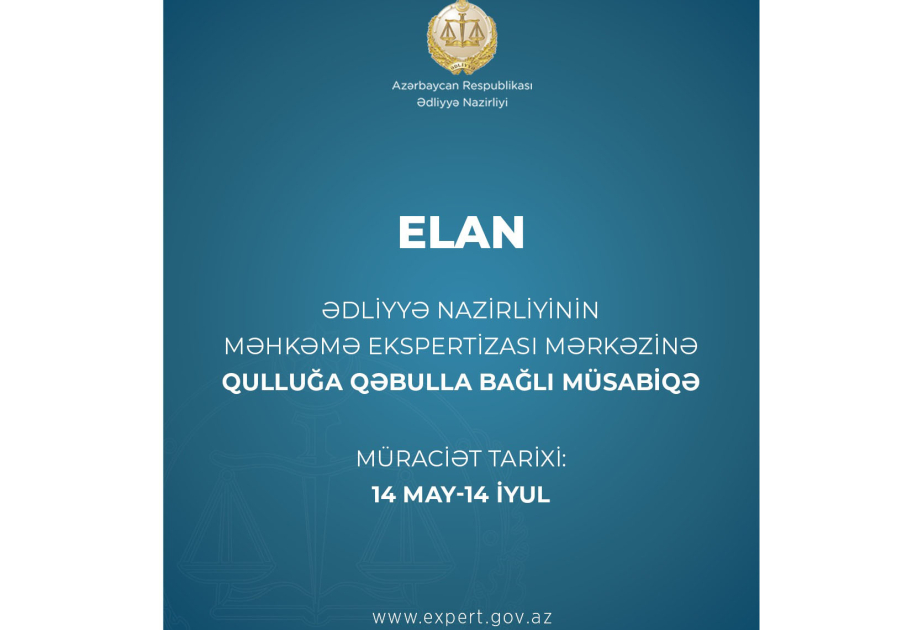 Ədliyyə Nazirliyinin Məhkəmə Ekspertizası Mərkəzinin kadr potensialının peşəkar mütəxəssislərlə gücləndirilməsi istiqamətində tədbirlər davam etdirilir. Bu məqsədlə Mərkəzin Müsabiqə Komissiyası tərəfindən bir sıra vakant vəzifələr üzrə açıq müsabiqə elan olunub.