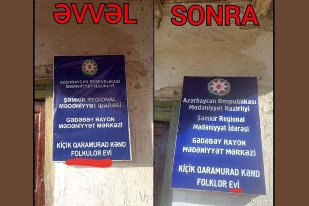 Üç gün öncə sosial şəbəkələrdə Gədəbəy rayonundakı Kiçik Qaramurad kənd Folklor evinin qarşısına yerləşdirilən lövhədə “folklor” sözünün “folkulor” şəklində yazıldığına dair məlumat paylaşıldı.