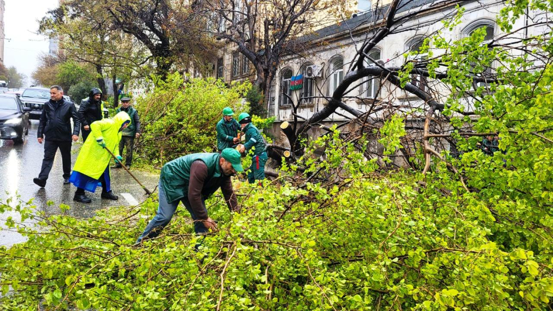 Birliyin əməkdaşları tərəfindən qırılan ağaclar kəsilib, zədələnənlər budanıb, ərazi təmizlənib.