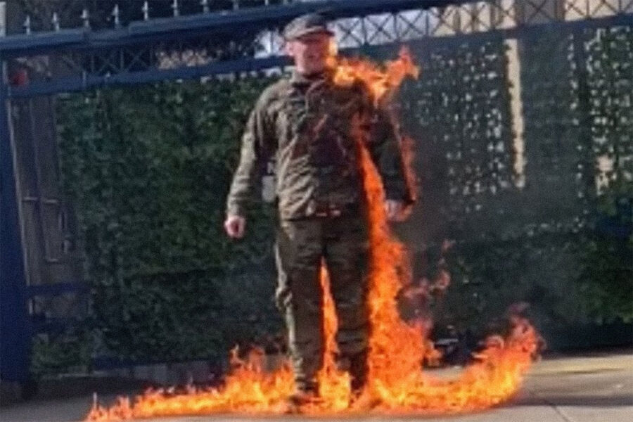 ABŞ-da İsrailin Vaşinqtondakı səfirliyi qarşısında hərbi geyimli bir şəxs od tutub yanıb.