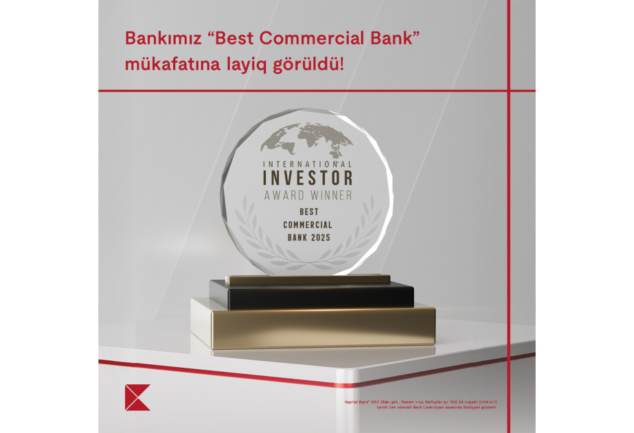 Azərbaycanın aparıcı maliyyə qurumlarından biri olan “Kapital Bank” beynəlxalq aləmdə daha bir mühüm uğura imza atıb. Bank, Böyük Britaniyada nəşr olunan nüfuzlu “International Investor” jurnalı tərəfindən “Ən yaxşı kommersiya bankı 2025” (“Best Commercial Bank Azerbaijan 2025”) nominasiyası üzrə qalib elan olunub.