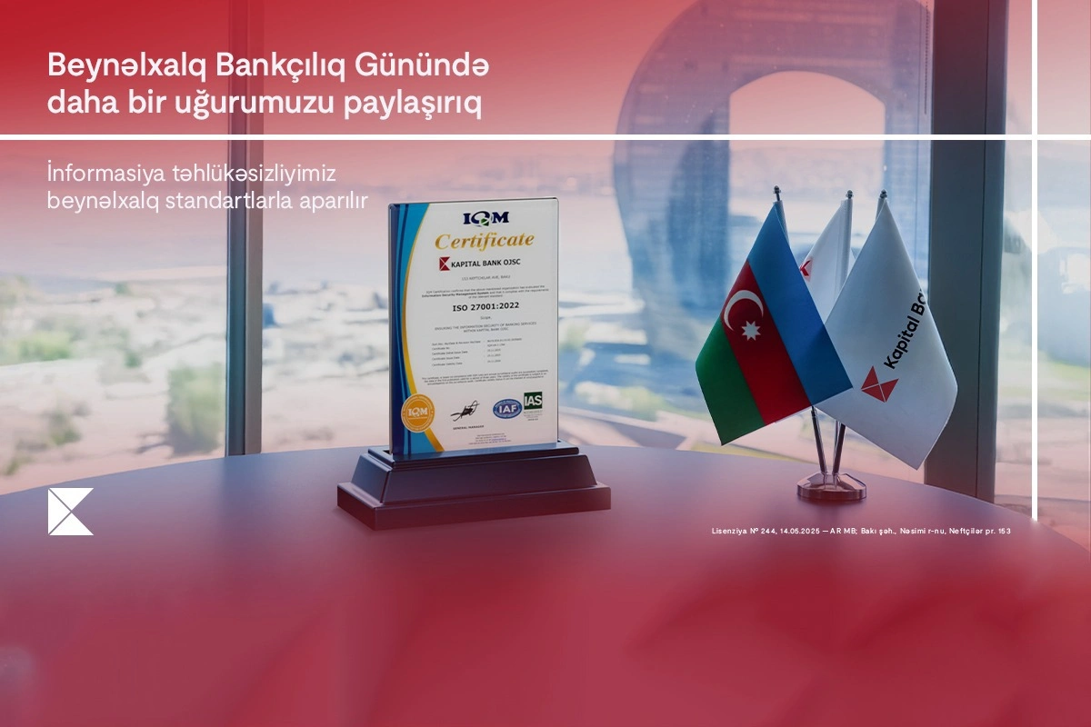 “Kapital Bank” informasiya təhlükəsizliyi idarəetmə sisteminin (İTİS) daha da gücləndirilməsini rəsmiləşdirərək, beynəlxalq miqyasda ən qabaqcıl standartlardan biri olan ISO/IEC 27001:2022 sertifikatı üzrə uyğunluğunu təsdiqləyib. Bu nailiyyət bankın rəqəmsal ekosisteminin və müştəri xidmətlərinin müasir kibertəhlükələrə qarşı ən yüksək səviyyədə müdafiə olunduğunun təkzibolunmaz göstəricisidir.