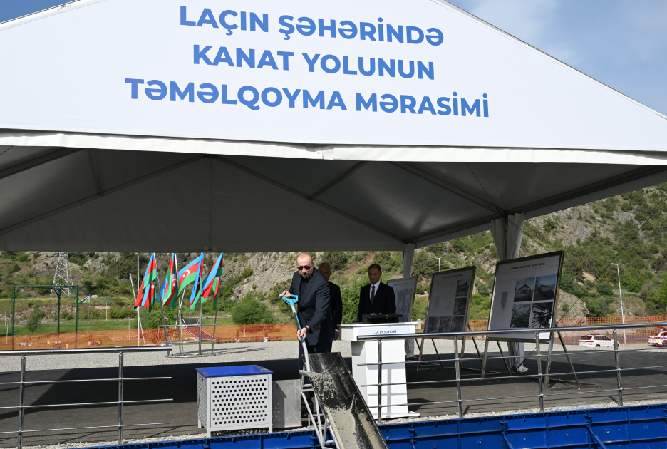 Azərbaycan Respublikasının Prezidenti İlham Əliyev mayın 27-də Laçın kanat yolunun təməlini qoyub.
