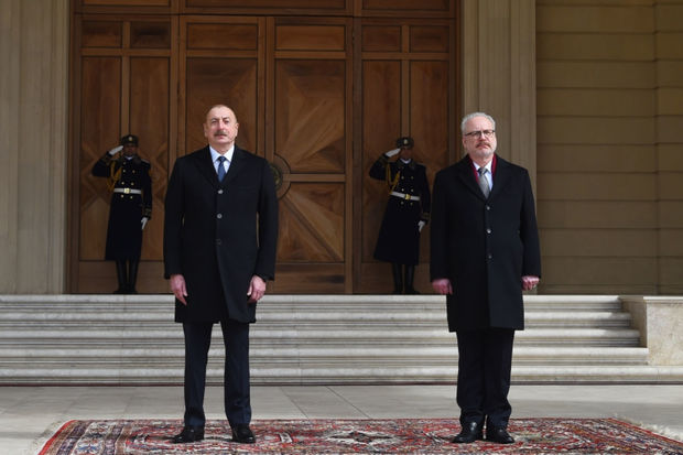 Azərbaycan Respublikasının Prezidenti İlham Əliyev Latviya Respublikasının Prezidenti Egils Levitsi qarşılayıb.