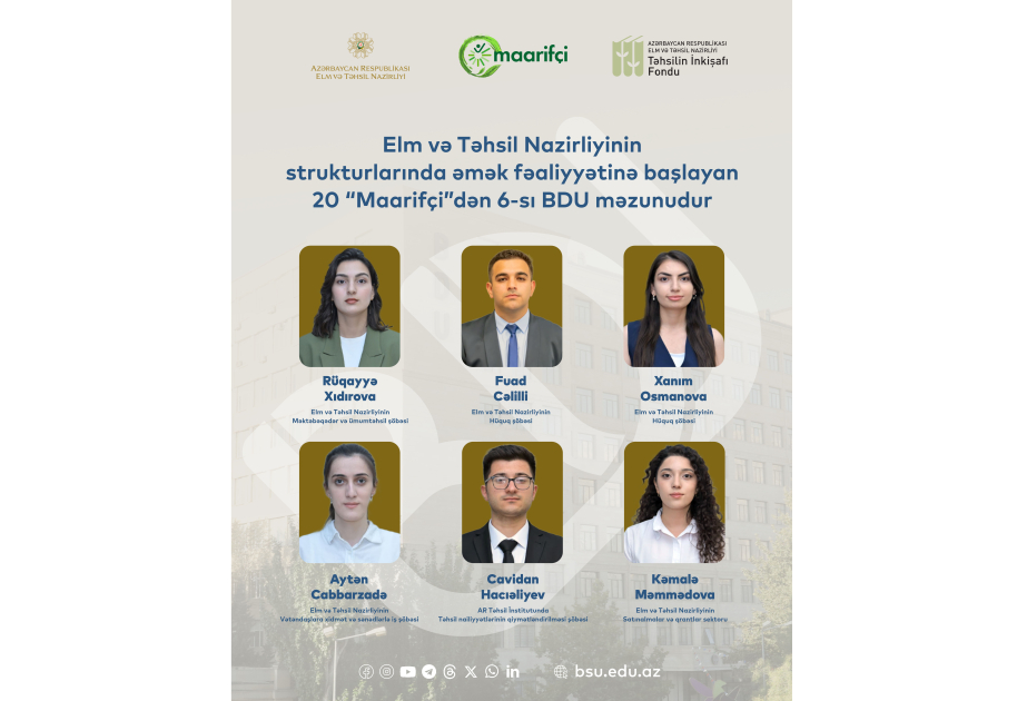 Qeyd edək ki, bundan əvvəl keçirilən ikinci “Maarifçi” təcrübə proqramını bitirərək işə qəbul olunan 10 iştirakçıdan 2-si də BDU məzunu olub.