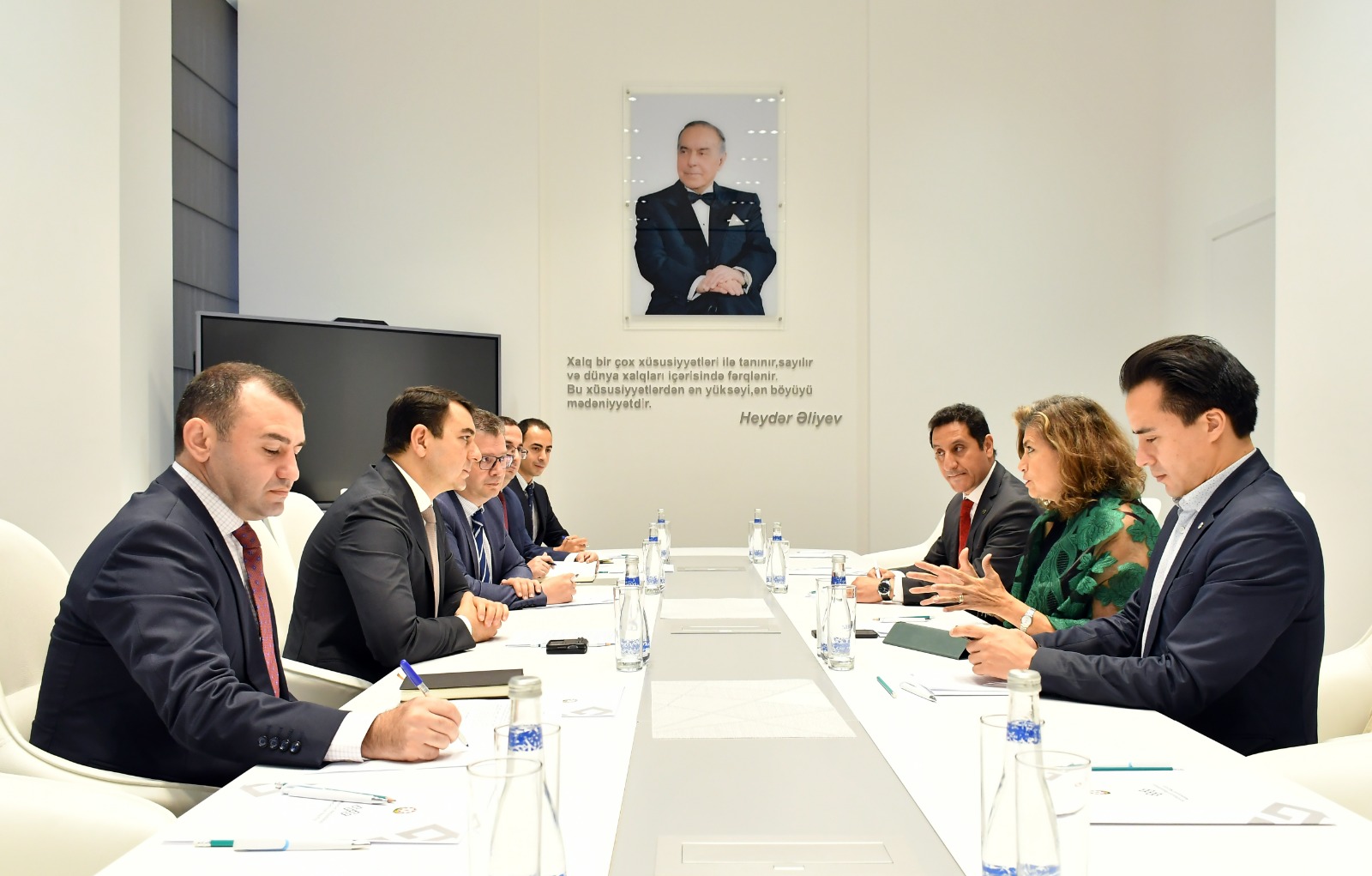 Mədəniyyət sahəsində mövcud əməkdaşlıq istiqamətlərindən danışan nazir, bu çərçivədə Prezident İlham Əliyevin təşəbbüsü ilə irəli sürülən “Bakı Prosesi” və Ümumdünya Mədəniyyətlərarası Dialoq Forumlarının önəmini xüsusi qeyd edib. Qlobal pandemiya ilə əlaqədar yaranmış fasiləyə baxmayaraq növbəti – VI Forumun 2024-cü ilin may ayında Bakıda keçirilməsi üçün hazırlıq işlərinə artıq başlanıldığı qeyd edilib. Forumun ənənəvi olaraq əsas tərəfdaşlar, o cümlədən UNESCO ilə birgə təşkil edildiyini nəzərə alaraq, növbəti foruma hazırlıq prosesində də təşkilatın müvafiq töhfə verəcəyinə ümid ifadə olunub.