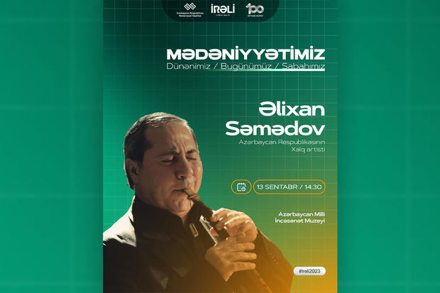 Azərbaycan Respublikasının Mədəniyyət Nazirliyinin dəstəyi, “İRƏLİ” İctimai Birliyinin təşkilatçılığı ilə ümummilli lider Heydər Əliyevin anadan olmasının 100-cü ildönümünə həsr olunmuş tədbirlər proqramı çərçivəsində “MədəniyyətimİZ” layihəsinin növbəti görüşü tanınmış balaban ifaçısı, Azərbaycan Respublikasının Xalq artisti Əlixan Səmədov ilə baş tutacaq.