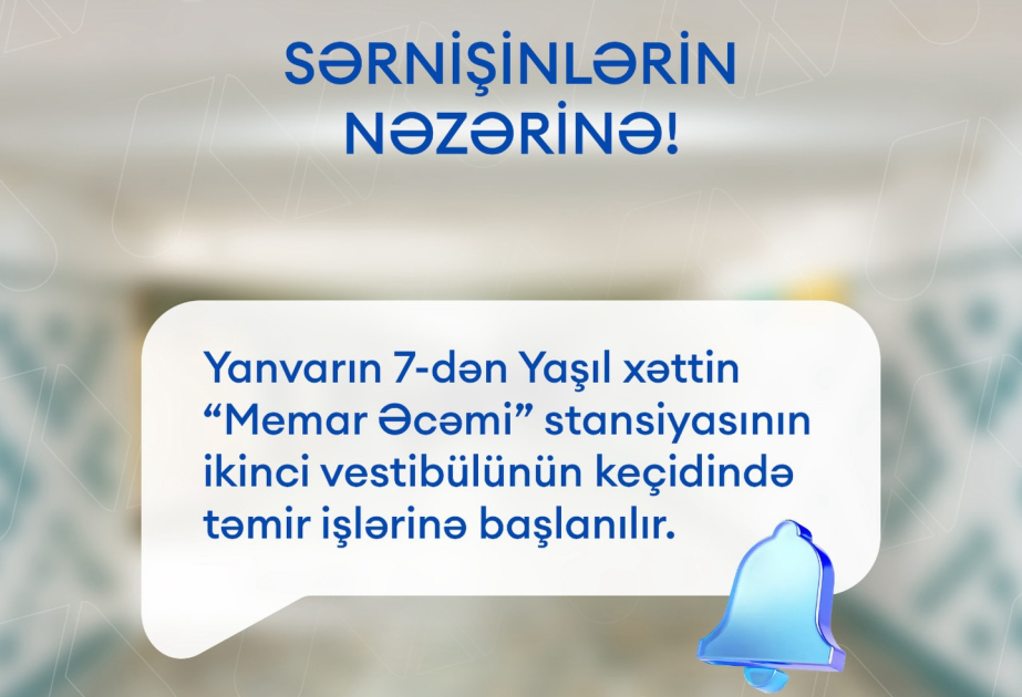 Qeyd olunub ki, təmir işlərinin ən qısa müddətdə yekunlaşdırılması planlaşdırılır. Xatırladaq ki, ötən ilin avqust ayında “Memar Əcəmi” stansiyasının Cavadxan küçəsi istiqamətində yerləşən keçidi və giriş-çıxışları əsaslı şəkildə təmir edilmişdi.