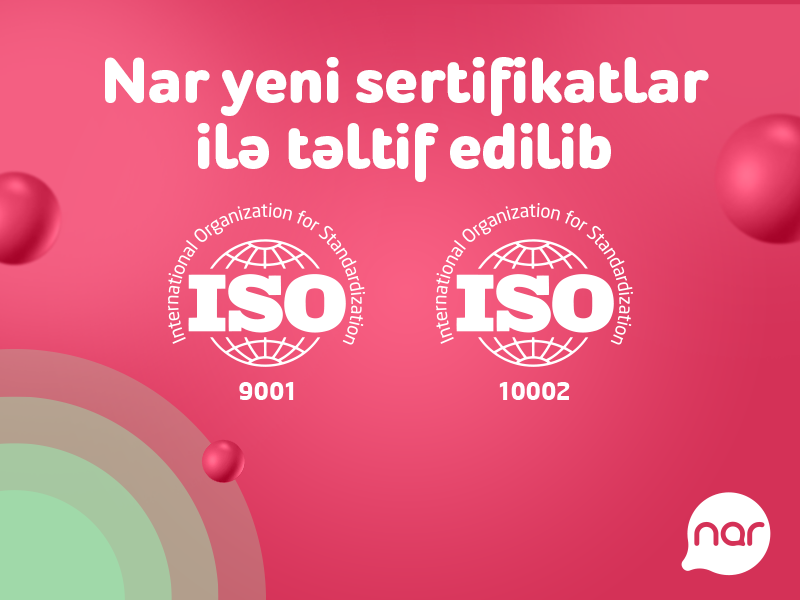 Qiymətləndirilmə aparıcı beynəlxalq yoxlama və sertifikatlaşdırma şirkəti olan “Bureau Veritas Group” tərəfindən aparılıb. “Nar” müştərilərinə etibarlı şəkildə yüksək keyfiyyətli xidmətlər təqdim etmək öhdəliyini davamlı şəkildə nümayiş etdirərək Beynəlxalq Standartlaşdırma Təşkilatının meyarlarına cavab verib.
