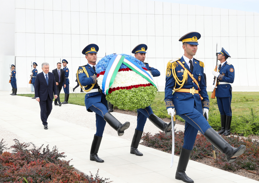 Özbəkistan Prezidenti parkdakı Zəfər abidəsinin önünə əklil qoydu.
