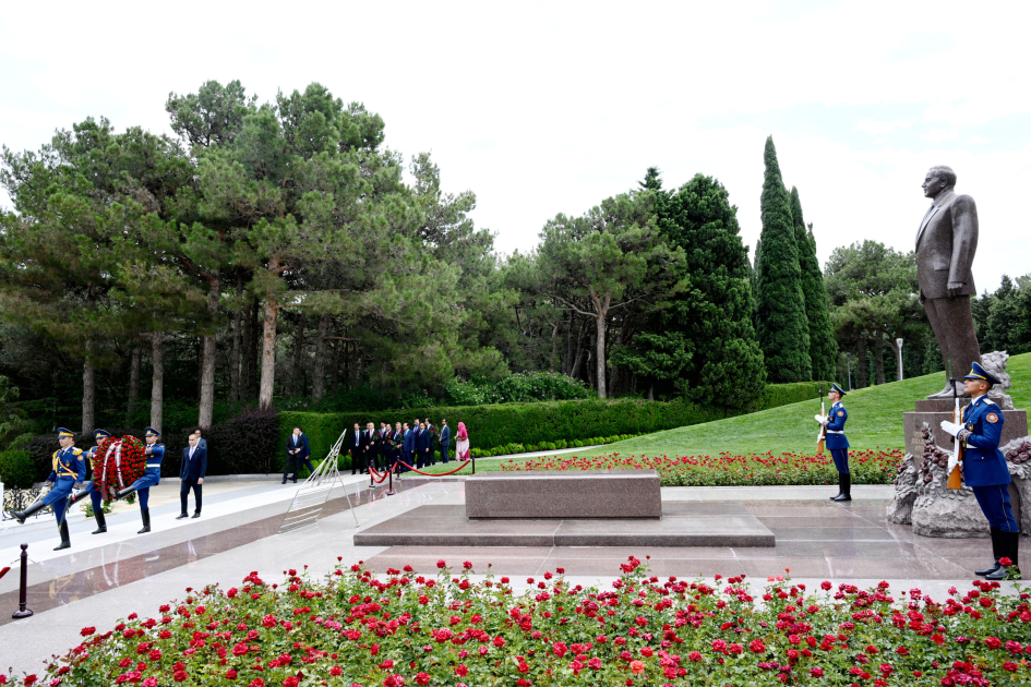 AZƏRTAC xəbər verir ki, nümayəndə heyətinin üzvləri xalqımızın Ümummilli Lideri, müasir müstəqil Azərbaycan dövlətinin memarı və qurucusu Heydər Əliyevin xatirəsini ehtiramla yad edib, məzarı önünə əklil qoyublar.