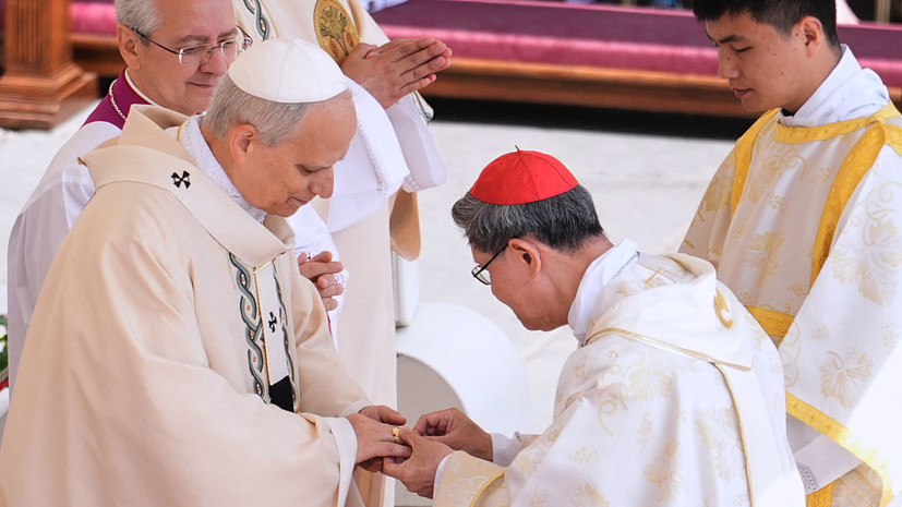 Papa XIV Leo papa hakimiyyətinin simvollarını qəbul etdi.