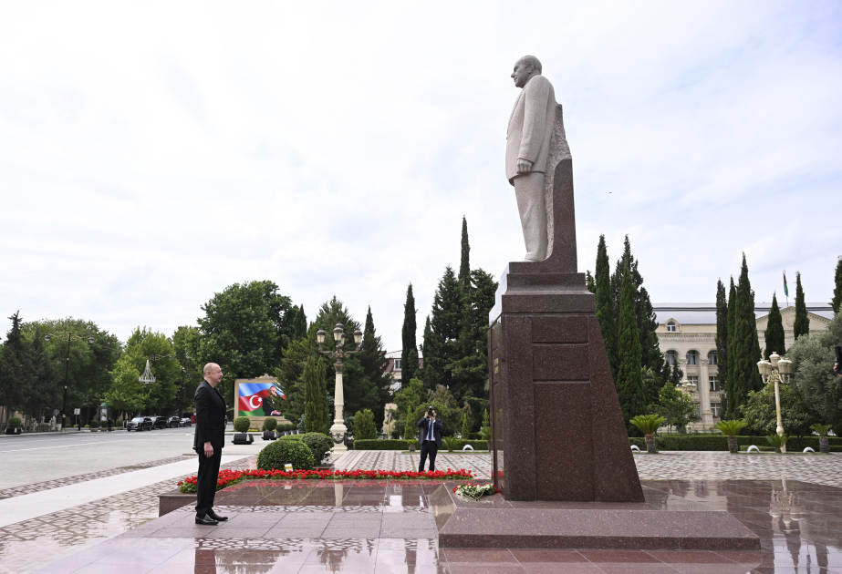 Prezident İlham Əliyev Yevlaxda Heydər Əliyevin xatirəsini andı