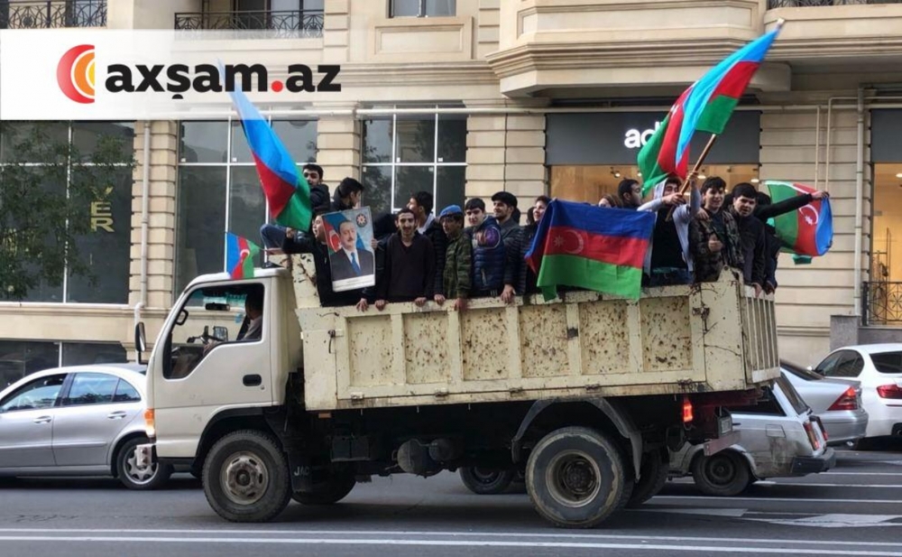 Doğru.az Axşam.az-a istinadən xəbər verir ki, gecədən Azərbaycan xalqı qələbəni qeyd etməyə başlayıb. İnsanlar əllərində bayraqlarla küçələrə axışıb.