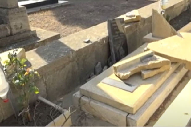 Məsələ ilə bağlı Yasamal Bələdiyyəsindən bildirilib ki, qəbir güclü külək nəticəsində dağılıb: