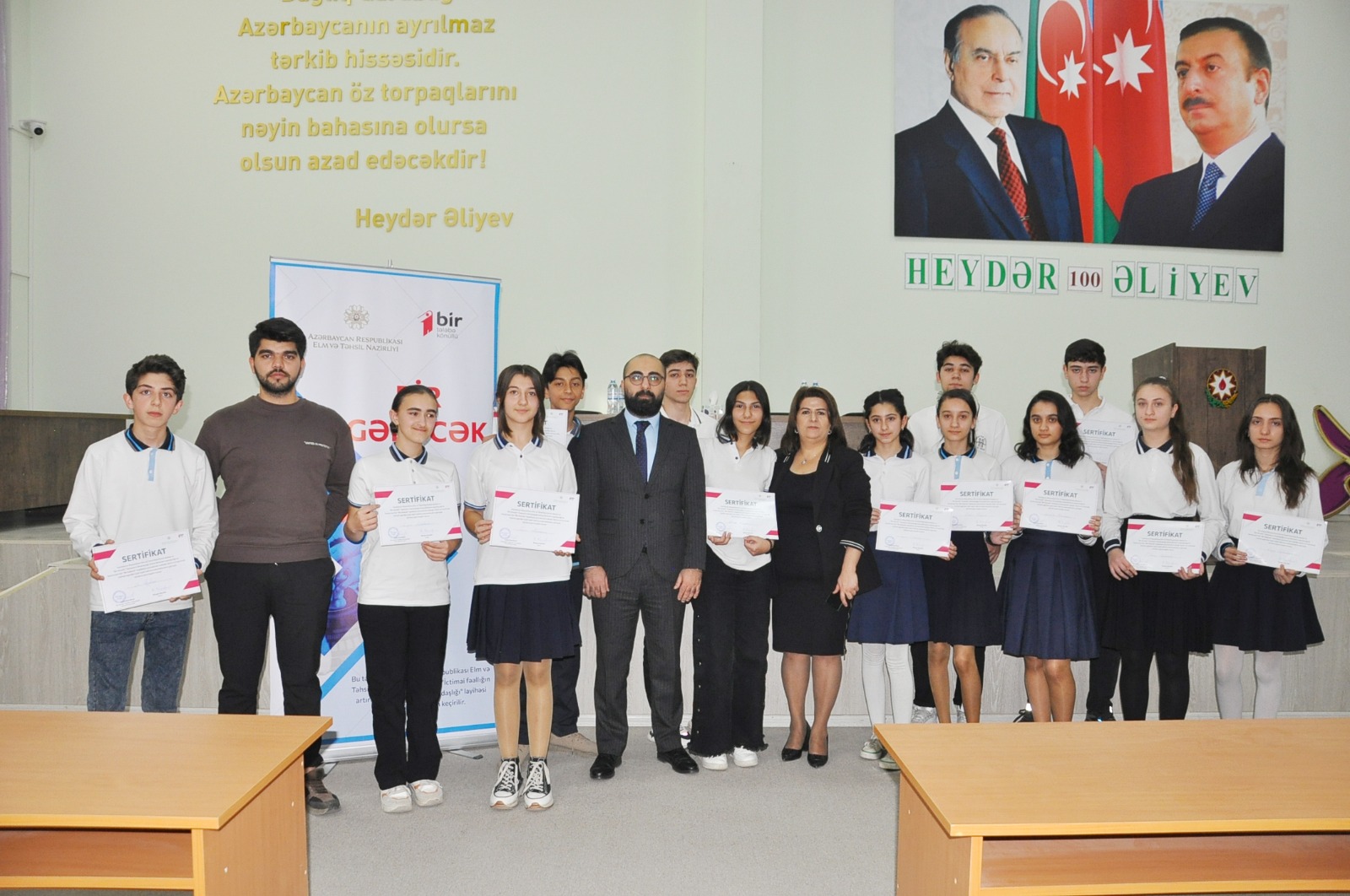 “İctimai fəallığın artırılması ilə dəyişim əməkdaşlığı” layihəsi çərçivəsində keçirilən “Bir Gələcək” təşəbbüsünün məqsədi şagirdləri gələcək ixtisas seçimi və karyera planlaması mövzusunda maarifləndirmək, dövlət və özəl sektorda çalışan, peşəkar həyatda uğur qazanan şəxslərlə şagirdlərin görüşünü təşkil edərək fərdi inkişafa dəstək olmaqdır.