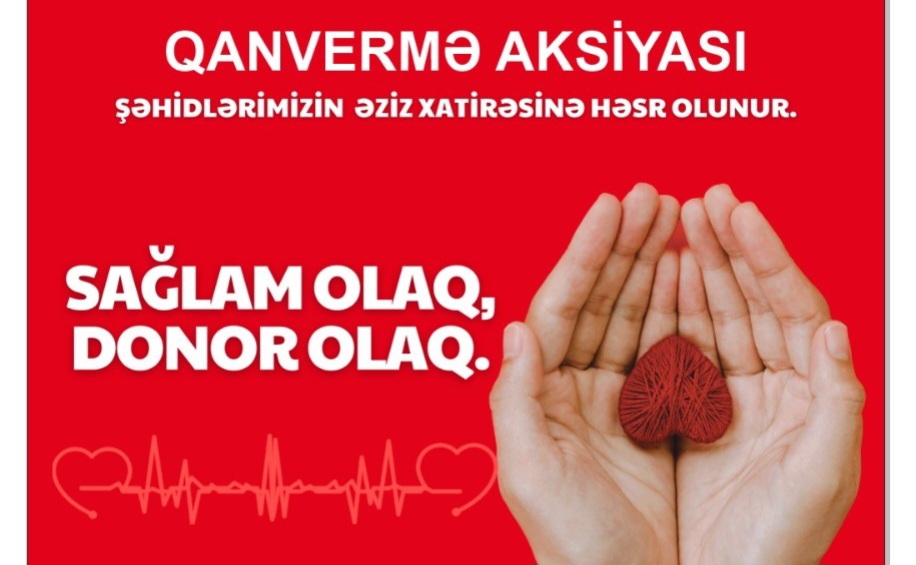 Azərbaycan Qan Donorluğunun İnkişafı Mərkəzinin mətbuat xidmətindən verilən məlumata əsasən, qanvermə aksiyası 20.01.2024-ci il tarixində, saat 10:00-dan 16:00-dək Bakı İdman Sarayında həyata keçiriləcəkdir. Toplanan qan ehtiyatı yoxlanılaraq talassemiya, hemofiliya, eləcə də leykoz (Qan xərçəngi) xəstəliyindən əziyyət çəkən şəxslər üçün istifadə olunacaq.