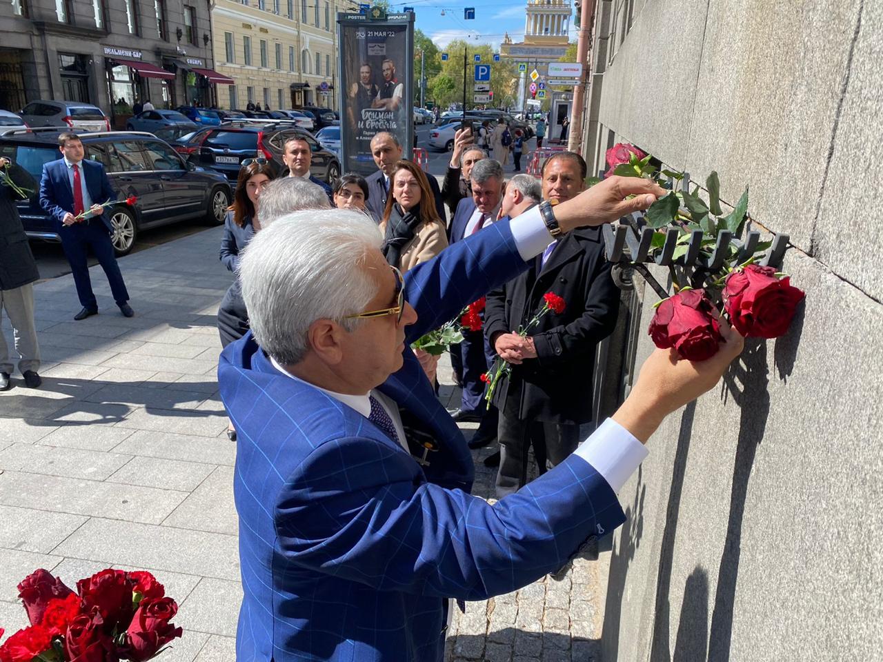 Bu gün – mayın 10-da ümummilli lider Heydər Əliyevin anadan olmasının 102-ci ildönümü münasibətilə Sankt-Peterburqda Azərbaycan diasporunun üzvləri Goroxovaya küçəsi 6 ünvanında yerləşən barelyef önündə toplaşaraq böyük liderin əziz xatirəsini yad ediblər.