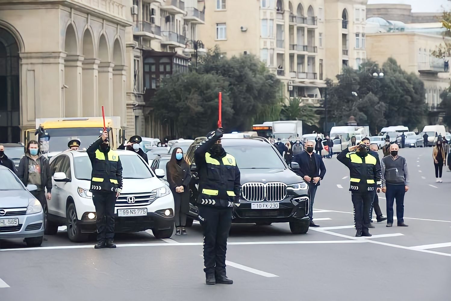 “Doğru az”-ın məlumatına görə, nəqliyyatın və piyadaların hərəkəti 1 dəqiqəlik dayandırılıb. Bakı buxtasındakı gəmilər, metro və yerüstü qatarlar fit verib.