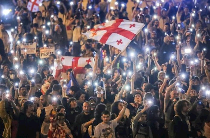 Tbilisidə hökumət əleyhinə növbəti kütləvi yürüş keçirilib.