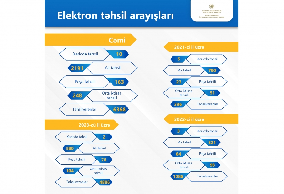 Hazırda Elm və Təhsil Nazirliyi tərəfindən bütün təhsil pillələri üzrə kağız daşıyıcıda verilən bir çox arayışlar elektron şəkildə təqdim olunur.
