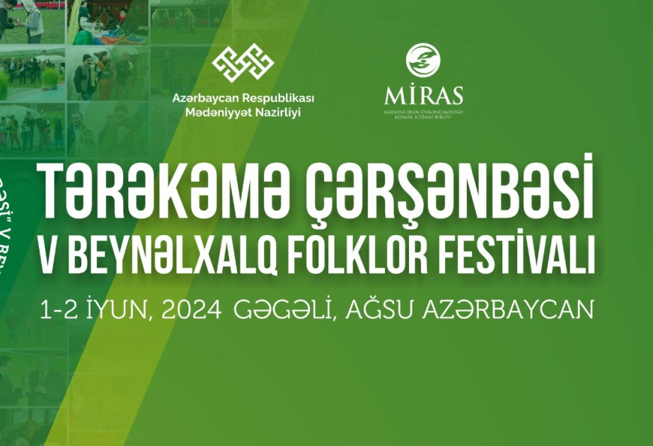 Mədəniyyət Nazirliyinin dəstəyi, “Miras” mədəni irsin öyrənilməsinə kömək İctimai Birliyinin təşkilatçılığı ilə “Tərəkəmə Çərşənbəsi beşinci beynəlxalq folklor festivalının keçirilməsi” layihəsi çərçivəsində iyunun 1-2-də Ağsu rayonu Gəgəli kəndi Tərəkəmə yurdu folklor turizmi məkanında beynəlxalq festival keçiriləcək.