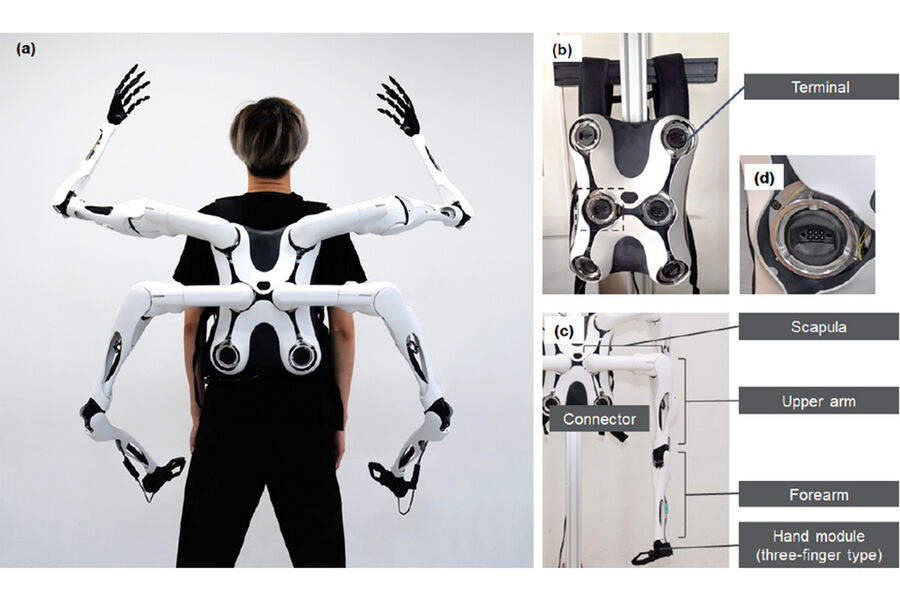 Sırt çantası şəklində olan sistem bir neçə bağlayıcıya görə istifadəçinin bədəninə sıx şəkildə oturur. Baza blokunda tez ayrılan robot qolları quraşdırmaq üçün altı port var. Limanlar cüt-cüt, lakin müxtəlif müstəvilərdə yerləşir. Alimlərin fikrincə, bu dizayn quraşdırılmış əzaların bir-birinin hərəkətinə mane olmamağa imkan verir.