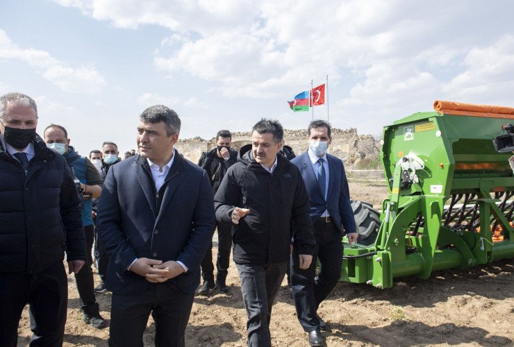 Azərbaycan kənd təsərrüfatı naziri İnam Kərimov isə öz növbəsində işğaldan azad edilən ərazilərin aqrar potensialına toxunub: “İşğaldan azad edilmiş ərazilər ənənəvi olaraq taxılçılıq, bitkiçilik, meyvəçilik və heyvandarlığın inkişafına görə qabaqcıl regionlardan olub. Azərbaycan Respublikasının Prezidenti cənab İlham Əliyevin tapşırığı ilə 7000 hektardan artıq sahədə əkin aparılıb. Burada yazlıq əkinlərə başlanılması da nəzərdə tutulur”.